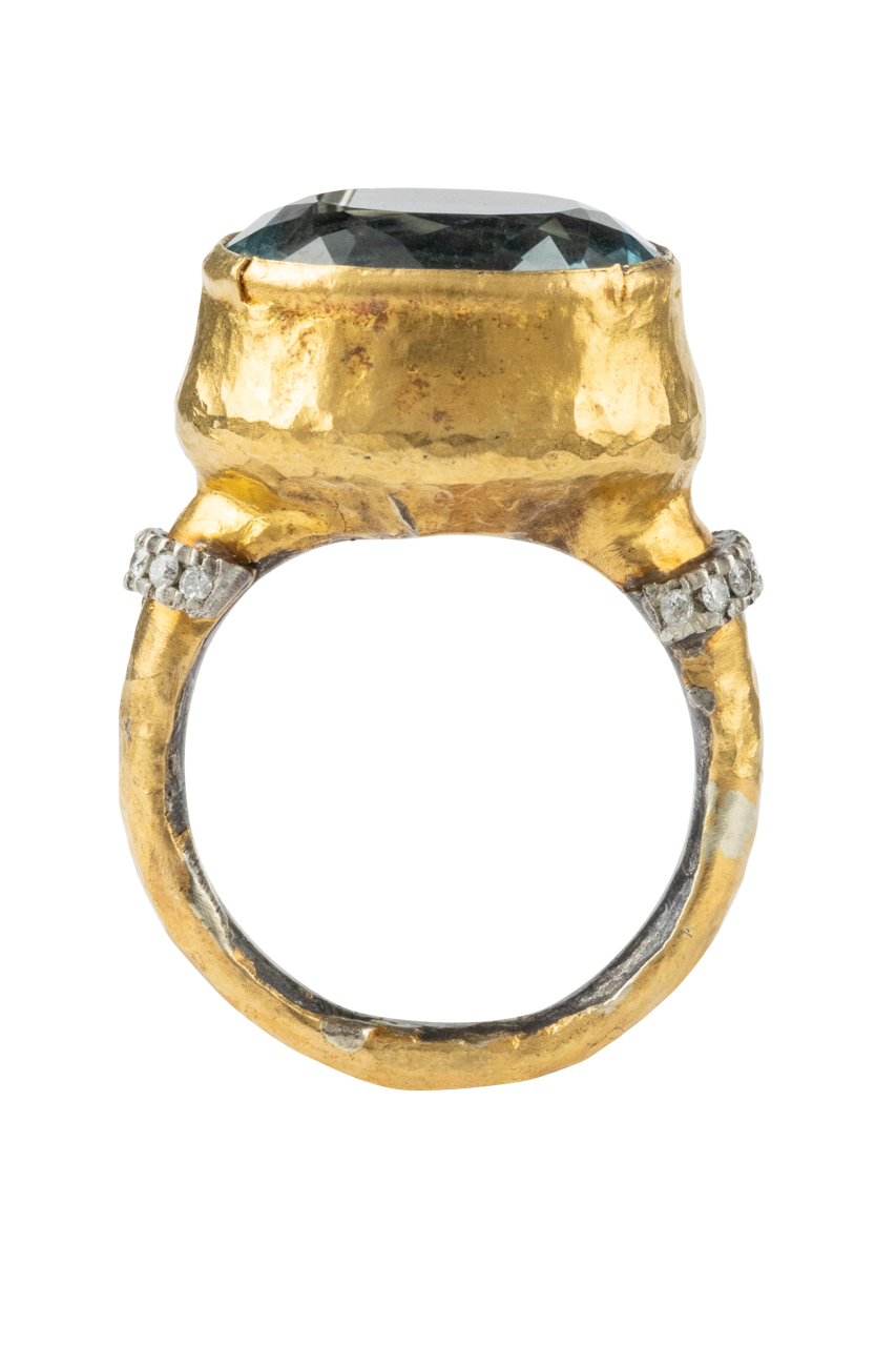 • Material: Blue topaz, diamonds, silver, 24K yellow gold