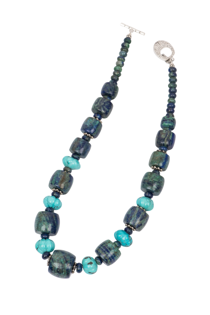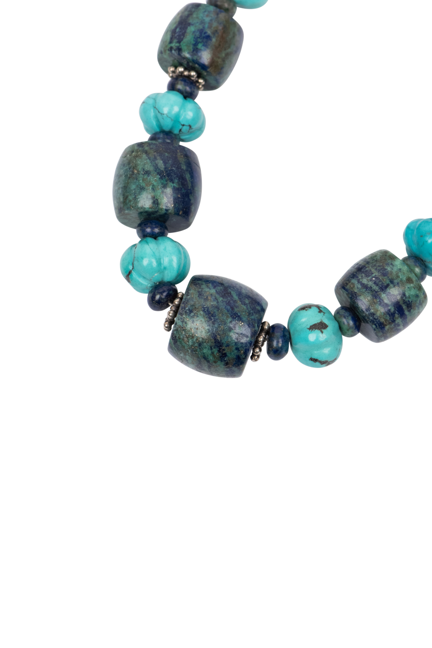 • Azurite graduated drums with turquoise pumpkins, lapis rondelles
