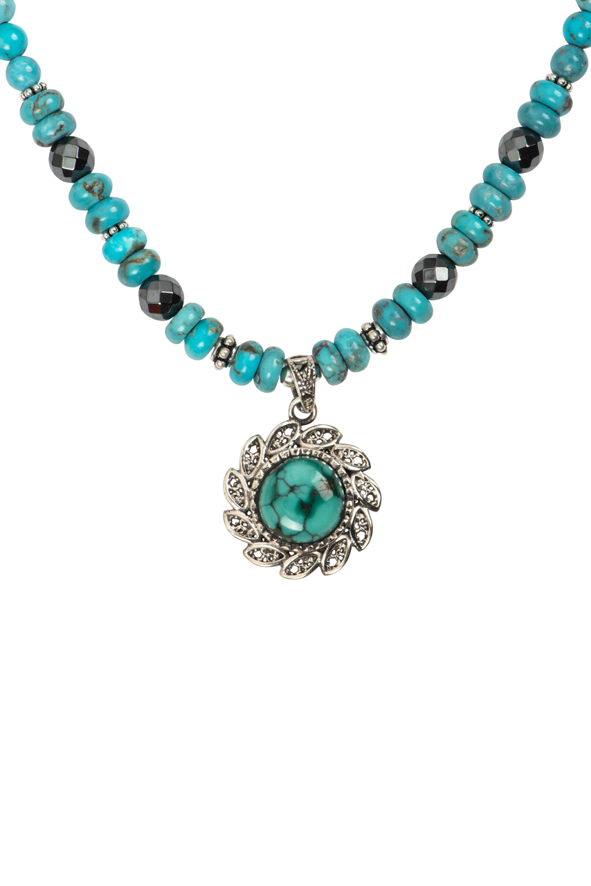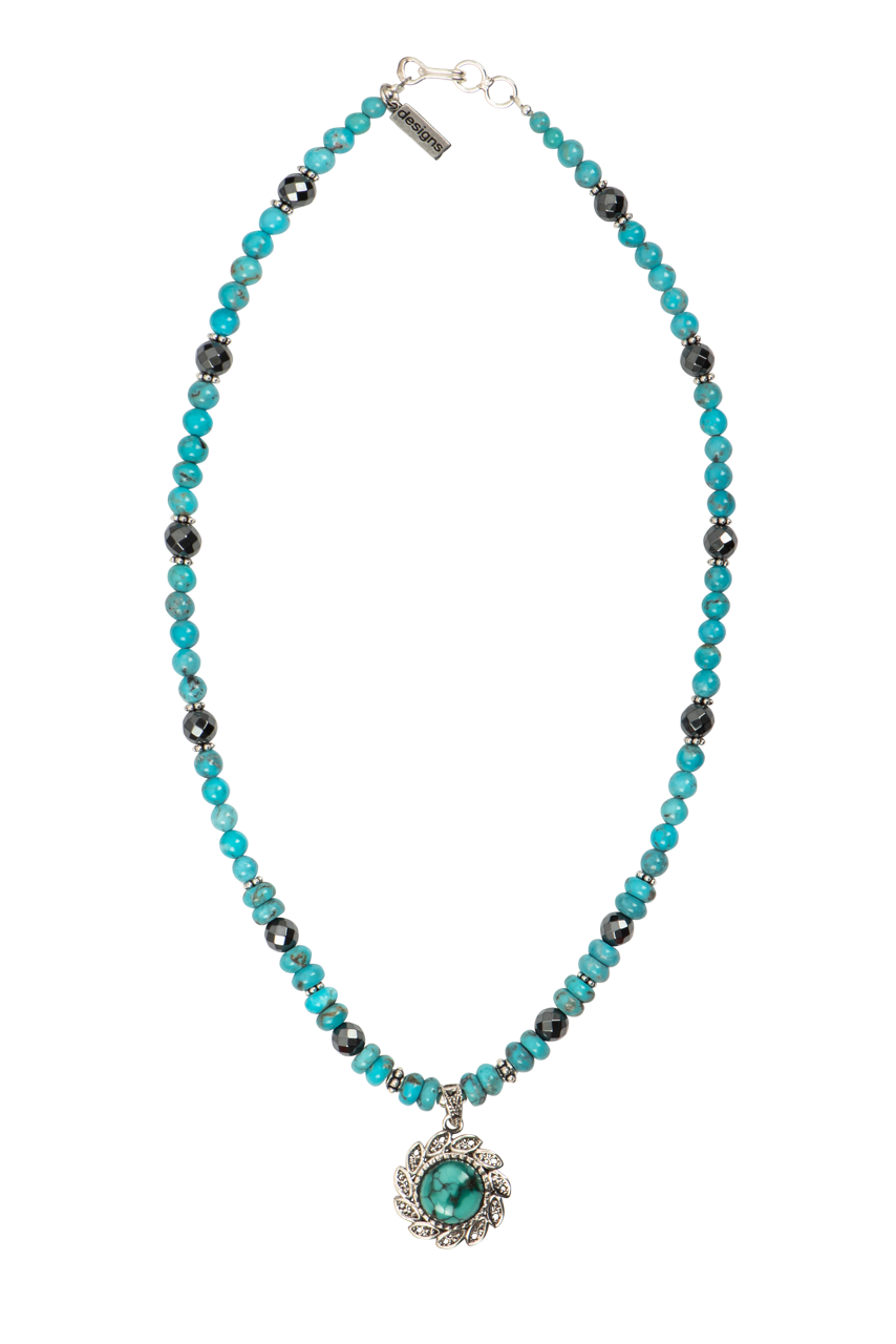 • Material: Turquoise stones, beads, hematite, sterling silver