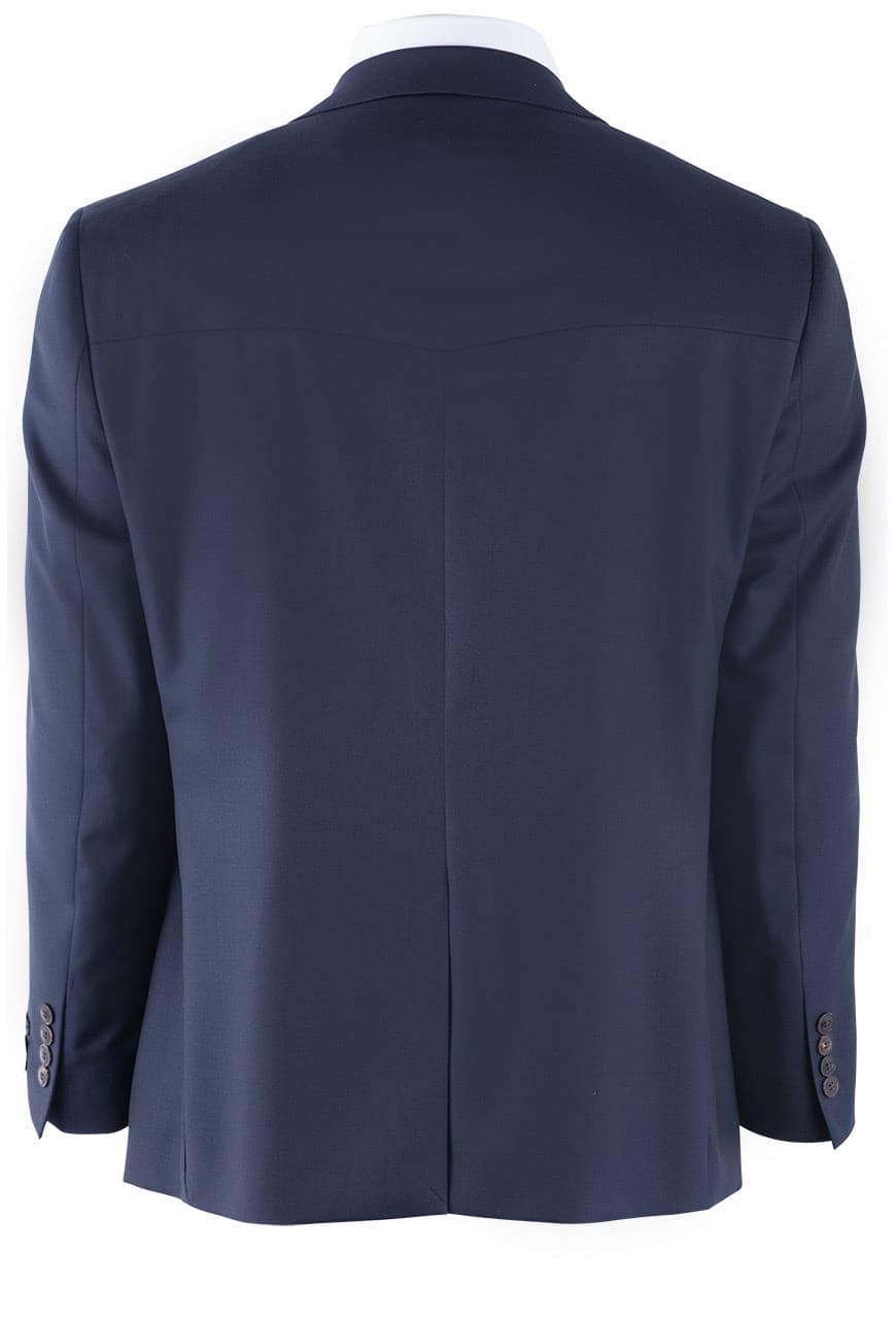 • Navy is as elegant as suits get, and it always pairs well with both jeans and slacks. Made of the finest wool, the Navy Western Sport Coat features a back western yoke, an open chest pocket and two front scalloped pockets. This style also has three interior button pockets, one open pocket, and high quality lining with coordinating trim.