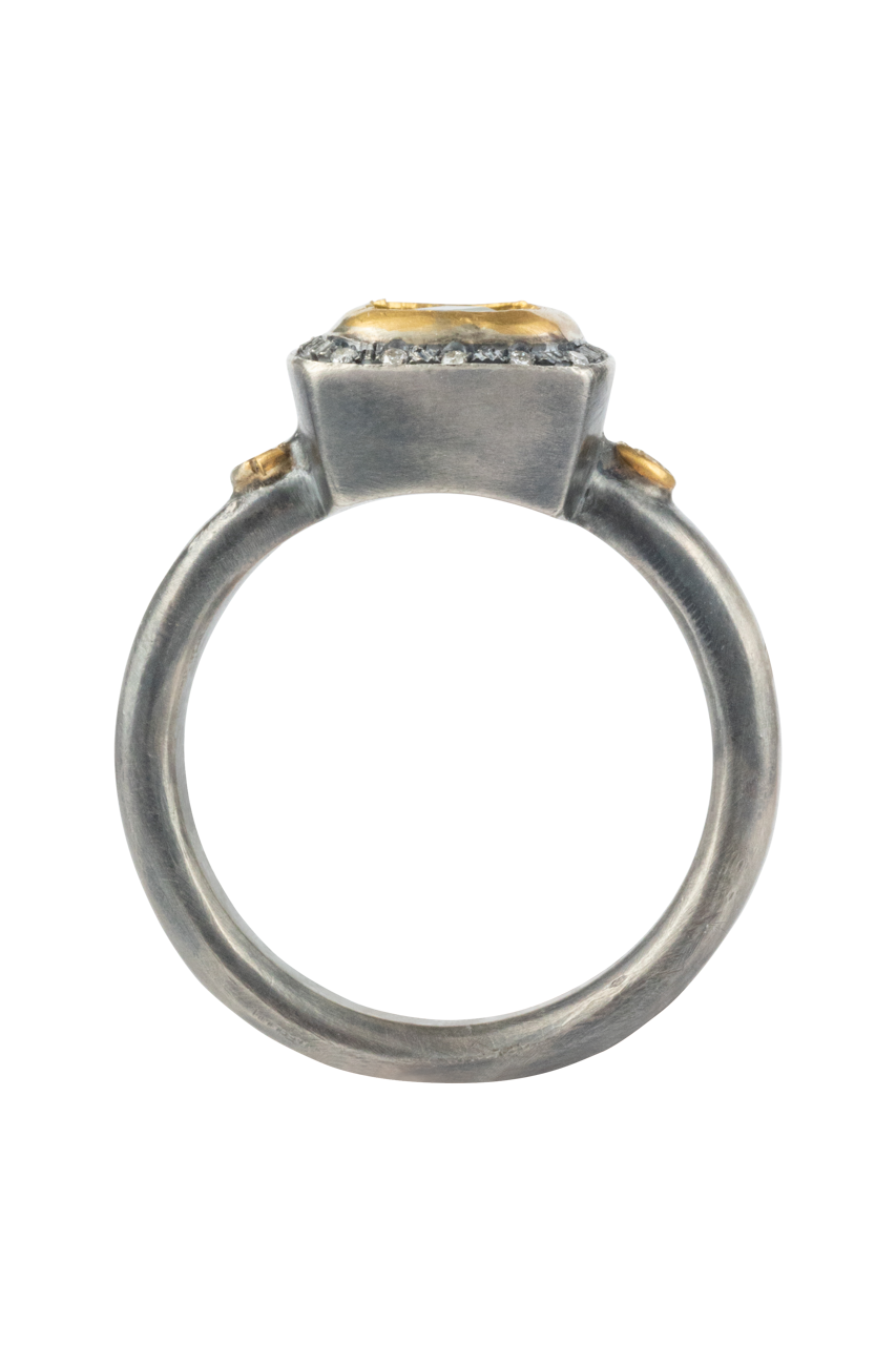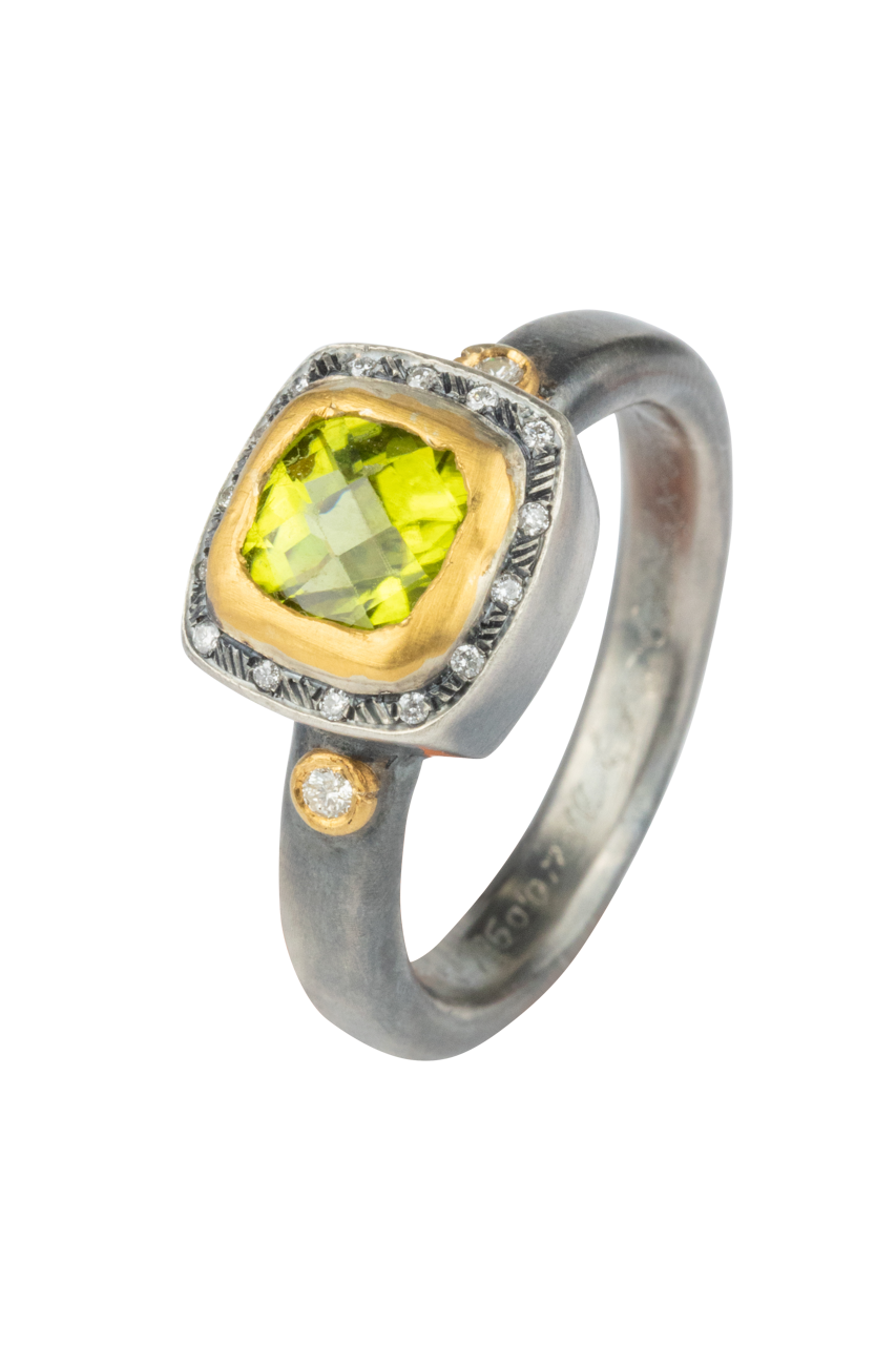 • Material: Peridot, diamonds, silver, 24K yellow gold