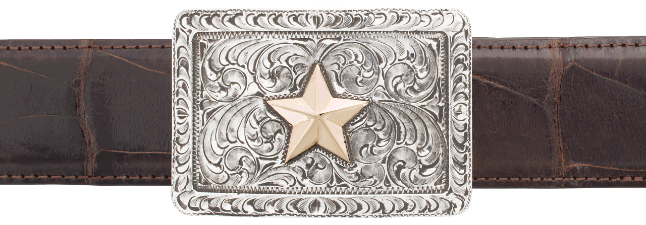 The Pinto Ranch YY Collection is an exclusive collection made by local Houston, Texas silversmiths who have been perfecting the craft since the 1970's. Using the finest sterling silver and 14k gold, each piece is crafted by hand. With the latest digital equipment, the design process is simplified allowing for each piece to be artfully hand-engraved. Both traditional and modern western themes are used to design buckles, cufflinks, money clips and bolo ties for Pinto Ranch.
