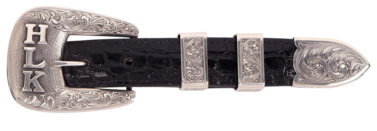 Belt buckles have surpassed basic utility to become a form of self-expression and to symbolize personal accomplishments. This personalized, initial trophy buckle set is crafted in sterling silver and features your initials, cut by hand, framed by a beautiful western engraving. This buckle set can also be customized with your ranch brand or company logo. It’s the perfect addition to your wardrobe essentials and makes a thoughtful gift. Enter your desired initials in the box below. Contact us for other custom options. This is a handmade item; western engraving is unique and will vary.