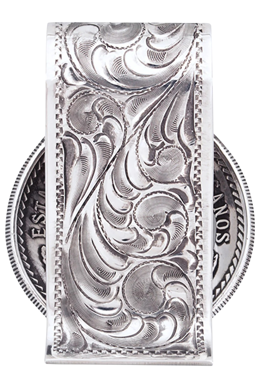 Pinto Ranch Cinco Peso Fully Engraved Money Clip