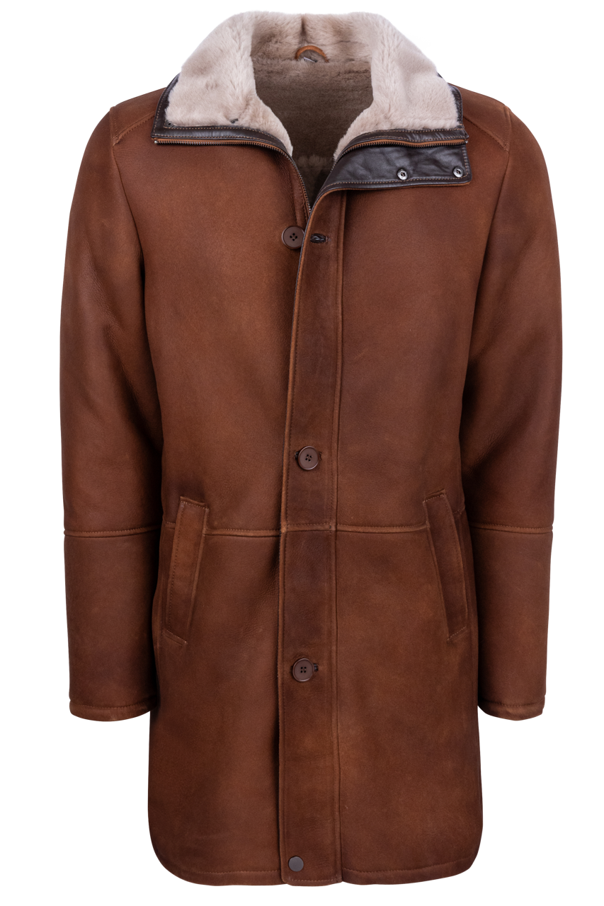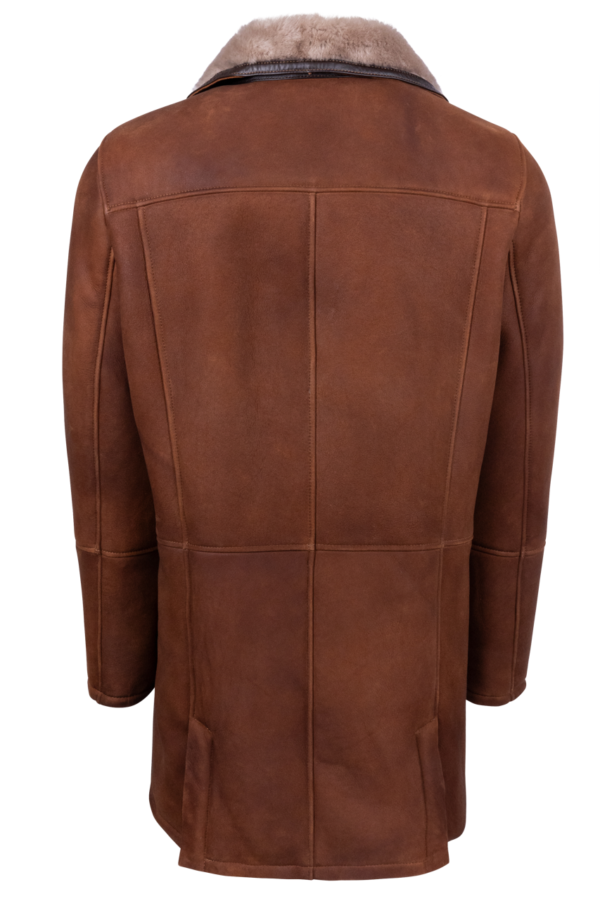• Classic brown merino coat with a tan shearling collar