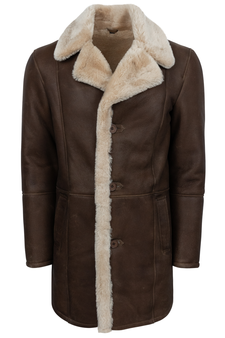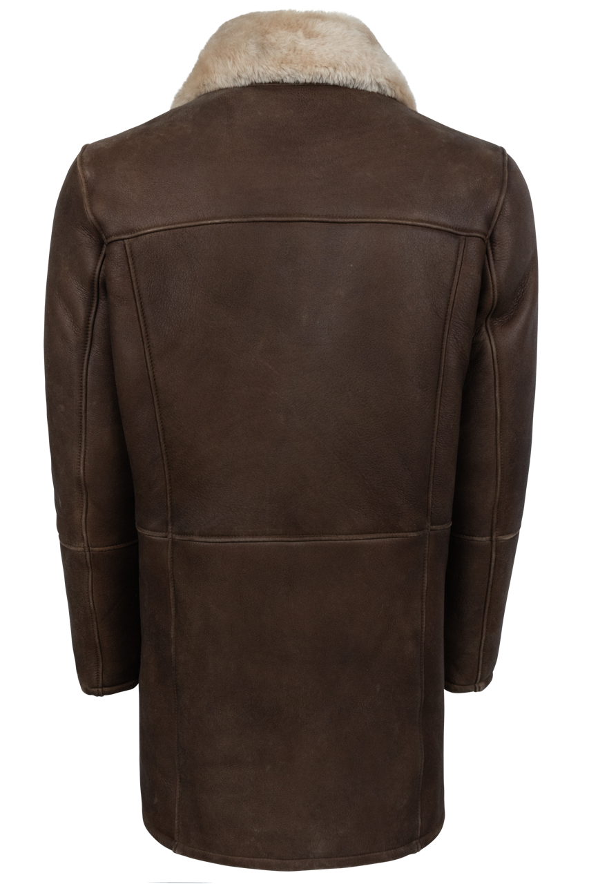 Pinto Ranch Smooth Leather Shearling Coat - Dark Brown