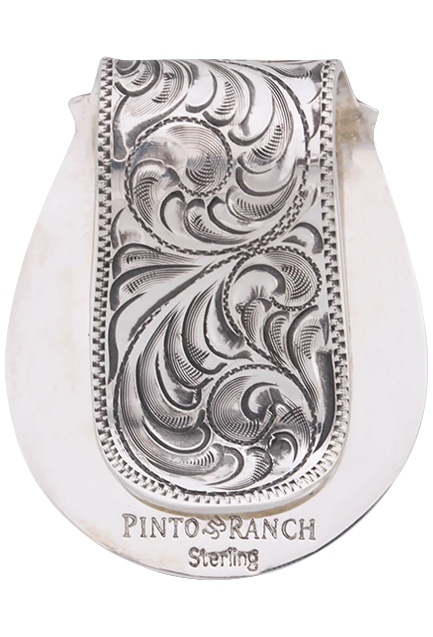 • The Pinto Ranch YY Collection is an exclusive collection made by local Houston, Texas silversmiths who have been perfecting the craft since the 1970’s. Using the finest sterling silver and 14k gold, each piece is crafted by hand. With the latest digital equipment, the design process is simplified allowing for each piece to be artfully hand-engraved. Both traditional and modern western themes are used to design buckles, cufflinks, money clips and bolo ties for Pinto Ranch.