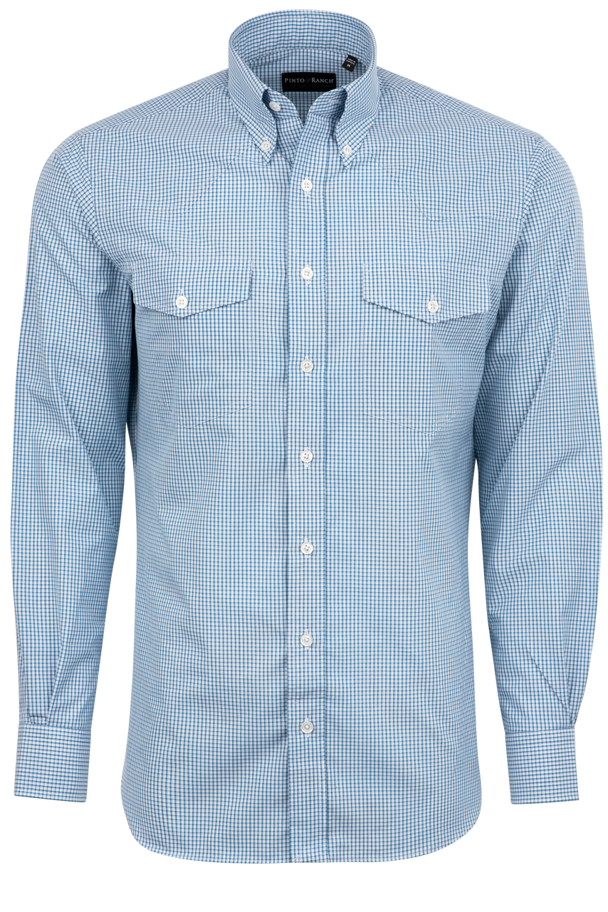 Pinto Ranch YY Collection Checked Poplin Button-Front Shirt - Blue