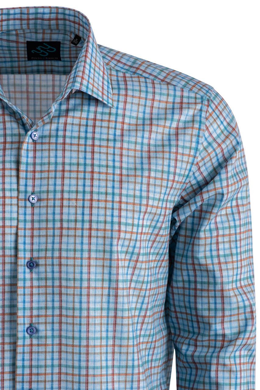 Pinto Ranch YY Collection Plaid Long Sleeve Button-Front Shirt - Blue