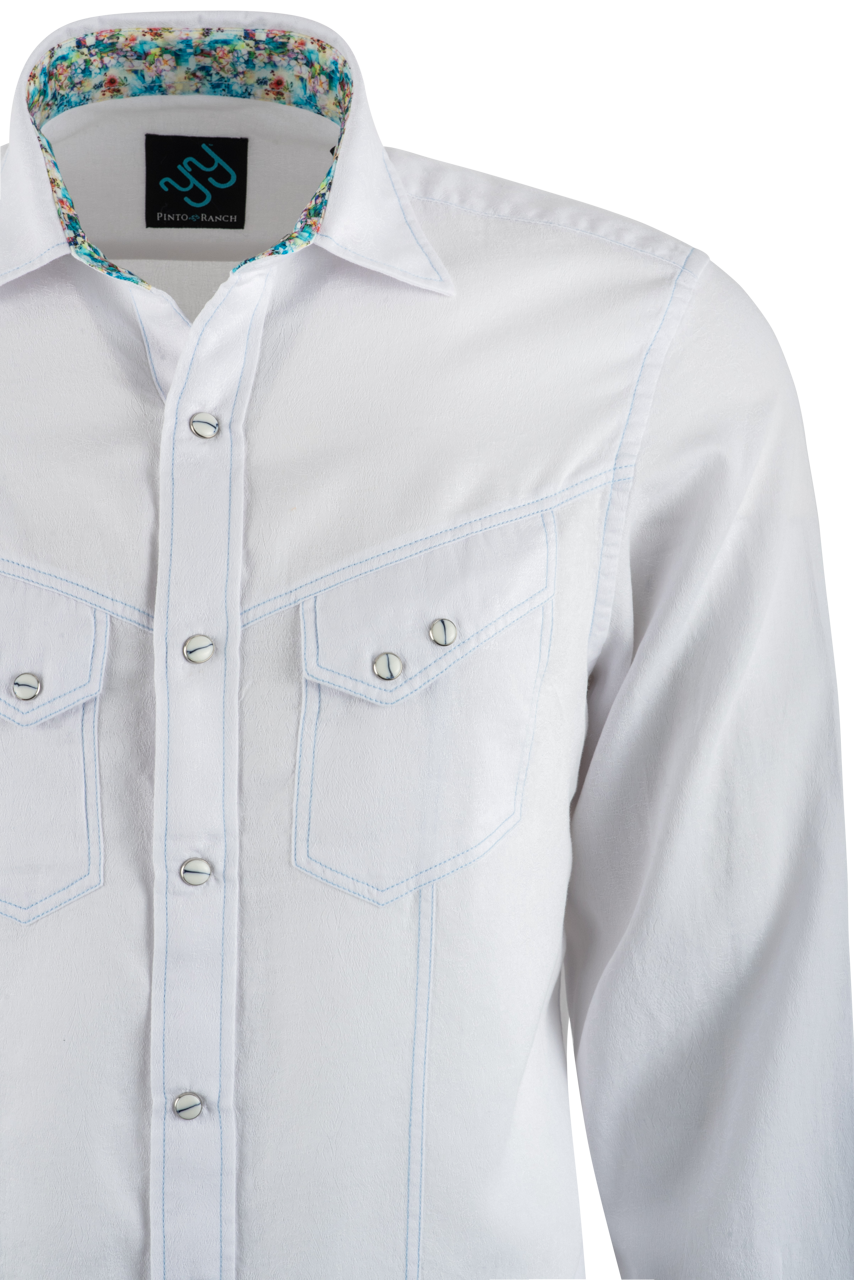 Pinto Ranch YY Collection Washed Long Sleeve Pearl Snap Shirt - White