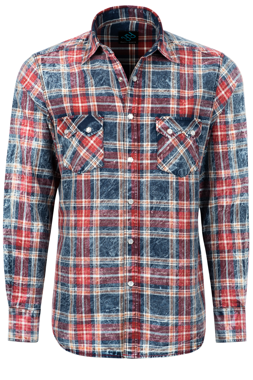 Pinto Ranch YY Collection Washed Plaid Snap Front Shirt - Red/Indigo