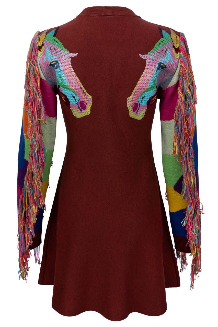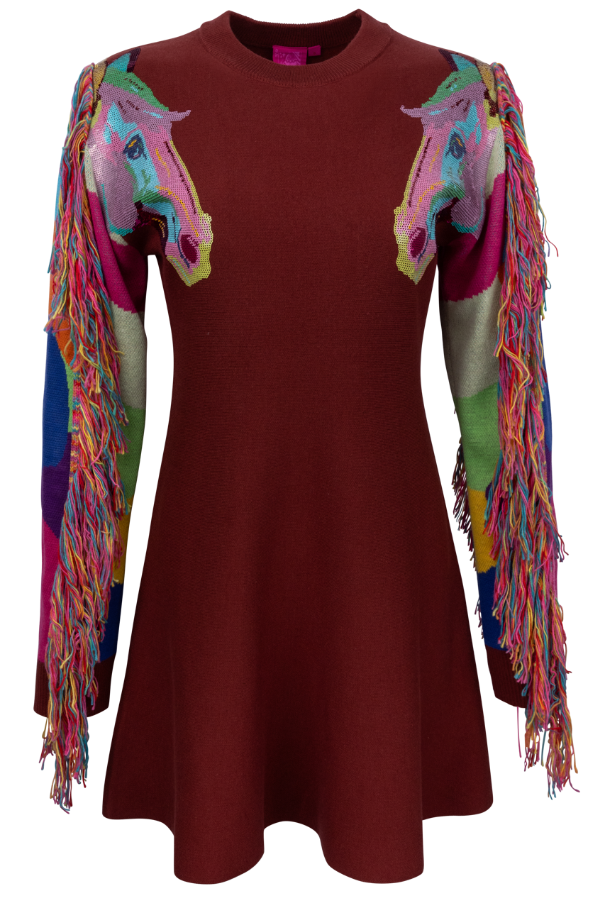 Queen of Sparkles Fringe Horse Sweater Dress