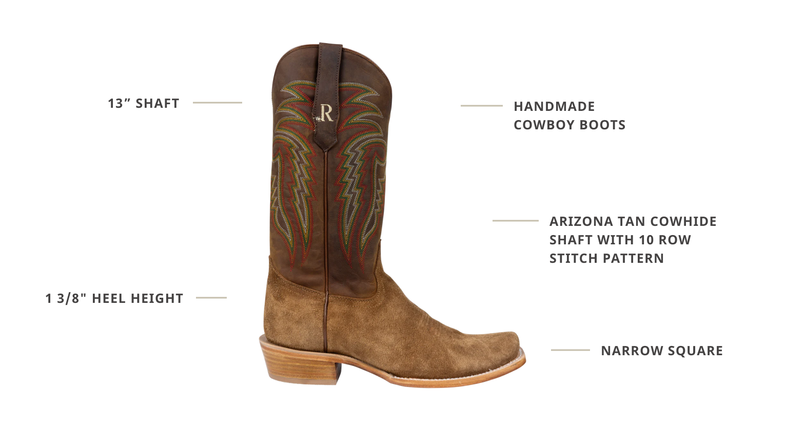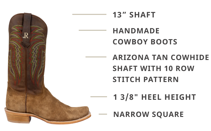 • Arizona tan cowhide shaft with 10 row stitch pattern