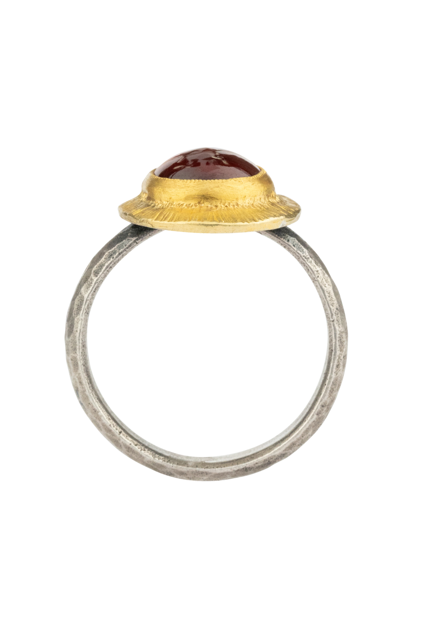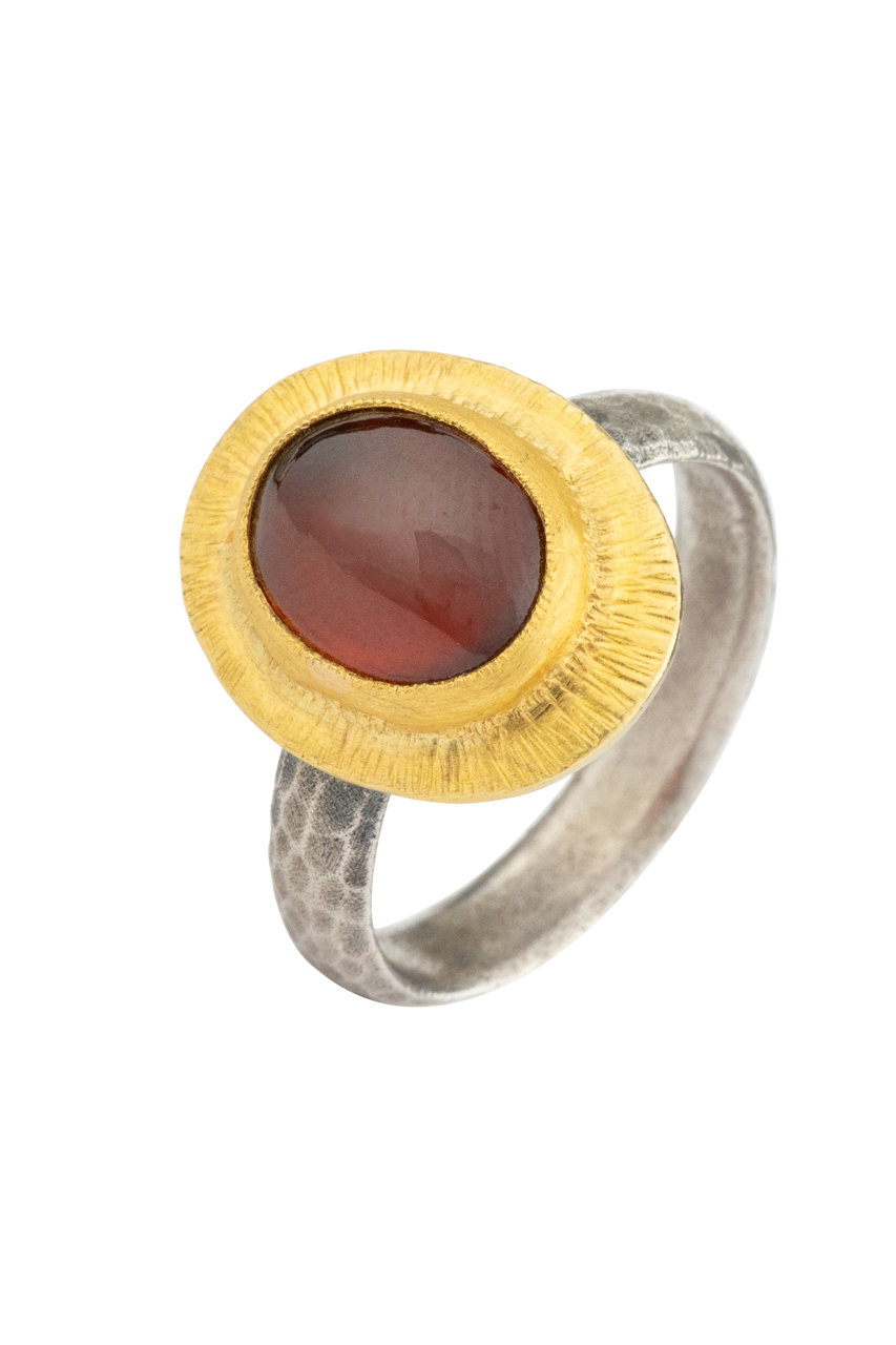 Red Garnet & 24K Gold Oval Ring