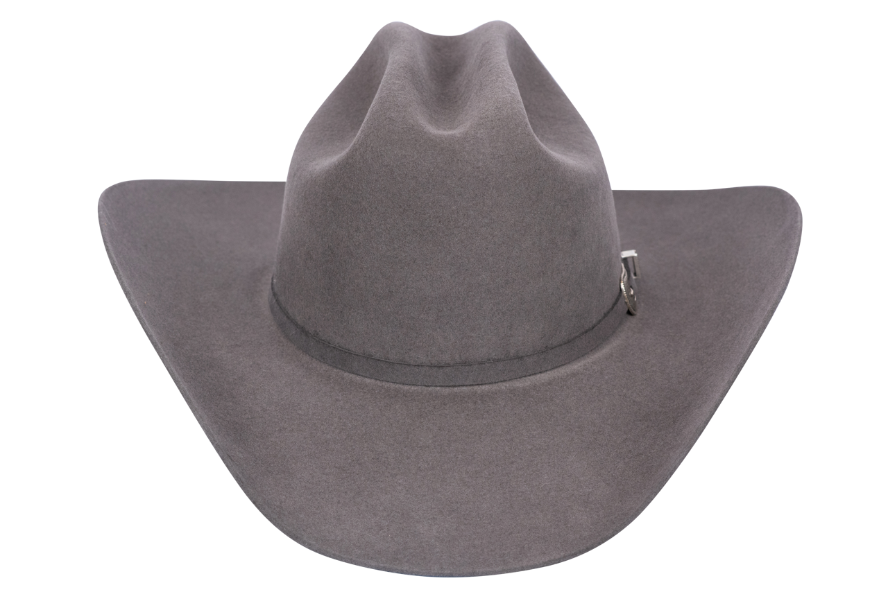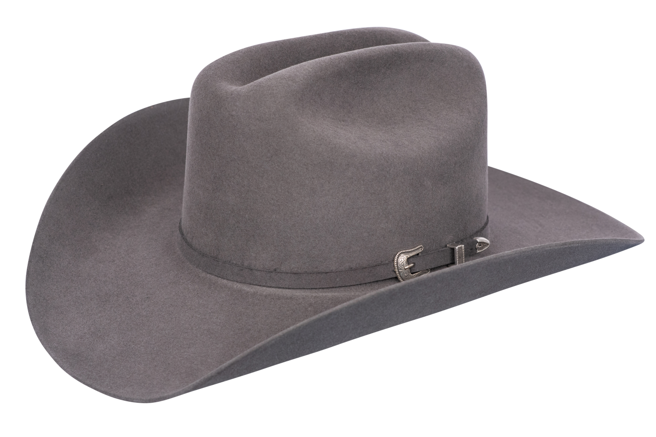 Tried and true cowboy through and through. Resistol has been dedicated to crafting the finest headwear since 1923 and to this day is committed to this age-old tradition. Pinto Ranch brings you their 5X The Challenger black felt hat with iconic 3-piece buckle set, a salute to all-American western style. This shows your steadfast allegiance to the hardworking cowboys of yesterday and today. Tough, resilient, and handsome, wear your 5X The Challenger with a distinctive low cattleman crown with pride and honor. Take this dark gray beauty along with you anywhere to road leads, from rides on the ranch, walks down the lane, and every fabulous frontier in between.