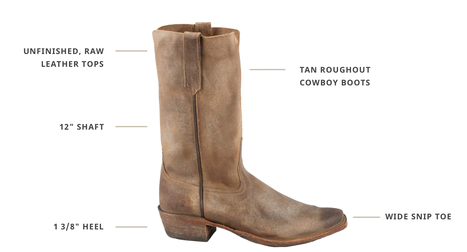 Made in south Texas of rugged cowhide, these boots feature a distressed, suede, rough finish in Sahara tan that is reminiscent of vintage Americana style. The flexible hybrid TufFlex sole and cushioned insole provide all day comfort and style. This casual boot pairs well with jeans and a western snap.