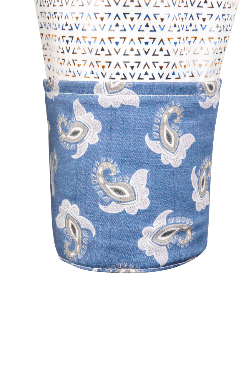 - Contrasting print on collar & cuff