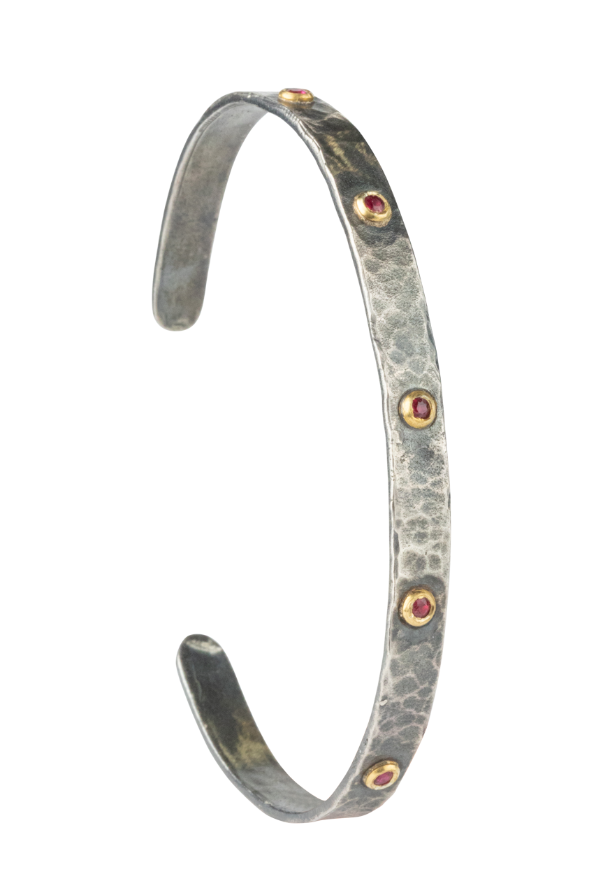• Thin cuff bracelet with dainty ruby stones