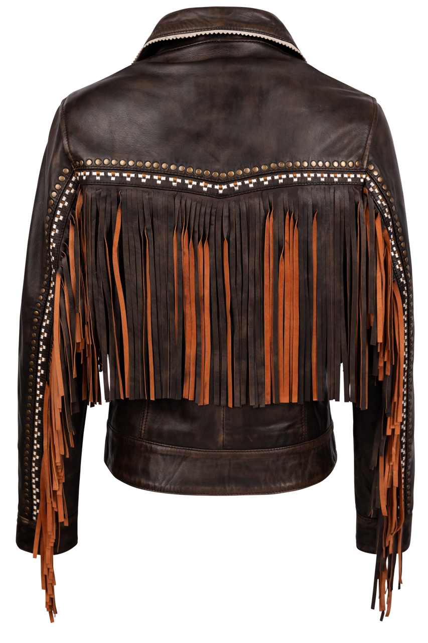 • Leather jacket with fringe details all over