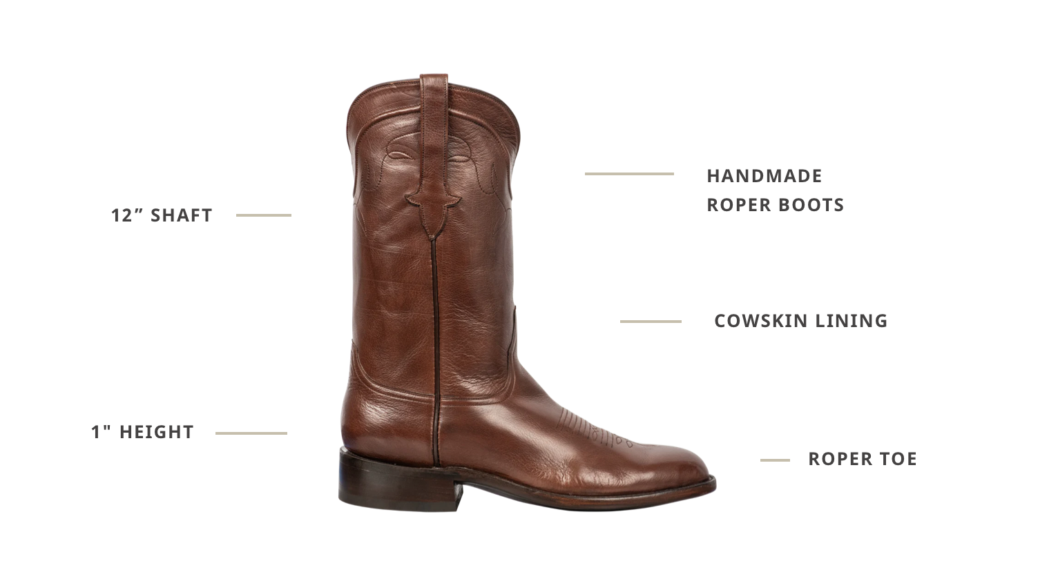 On-the-move lifestyles call for Stallion Whiskey Buffalo Calf Ropers. Every thoughtful, durable detail built into these beauties is designed to get you from point A to point B in comfortable style. It’s Stallion’s no-nonsense approach and top priority to fashion and function that is noticeable in these hardworking ropers. The 12” shaft with hand-corded collar and classic chain stitch offers a layer of tonal texture. The Western toe bug that leads right down to the wrinkle design on the vamp adds one more layer of comfort and style. The one-inch stacked leather heel and roomy C-toe round out these ropers, meant for both work and play. Wear them everywhere, from long days on the ranch to long nights on the town. Look good, feel great, and enjoy your ropers for every adventure, now and long into the future.