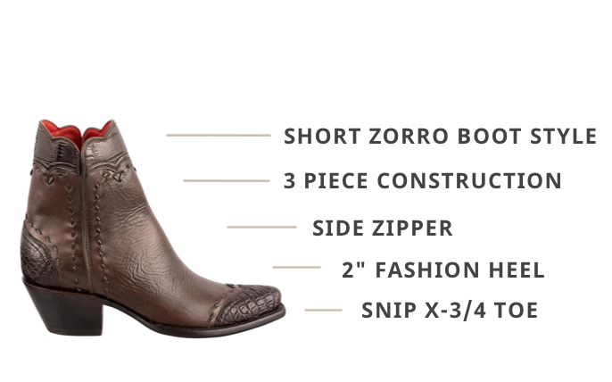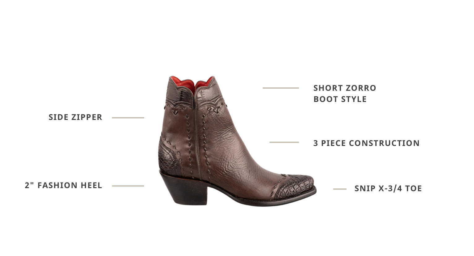 Stallion Women's Calf & Alligator Zorro Ankle Boots - Chocolate