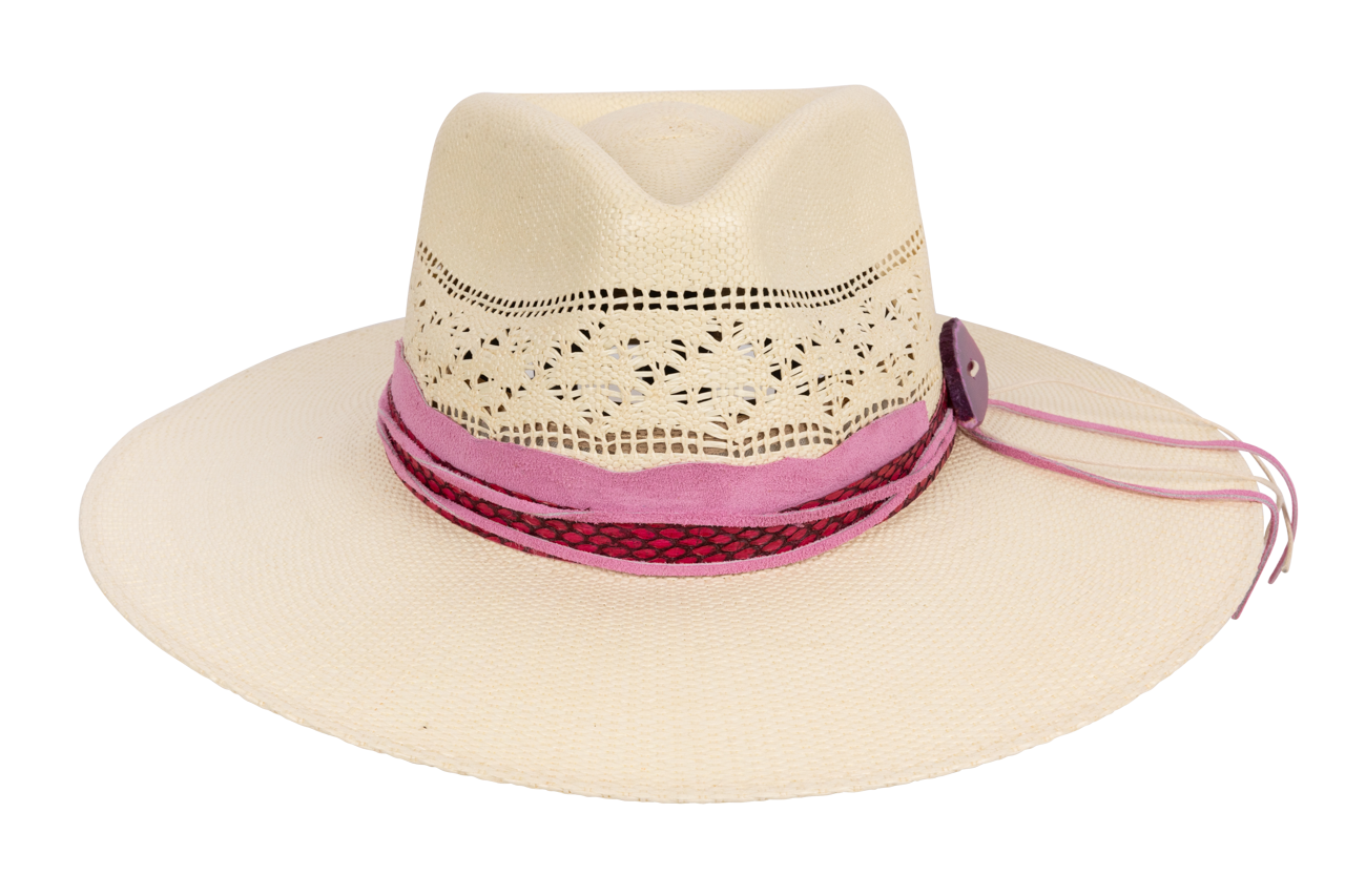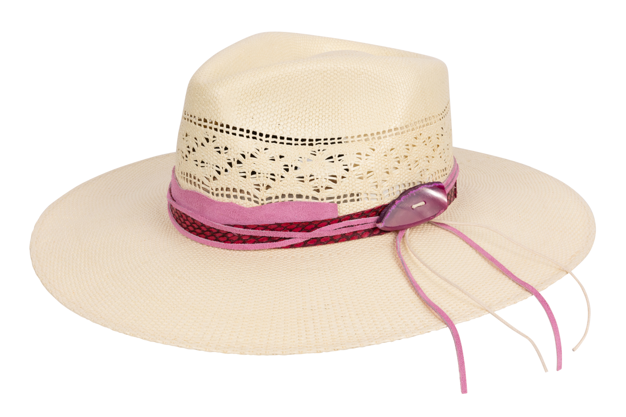 - Handmade hatband with pink agate stone closure