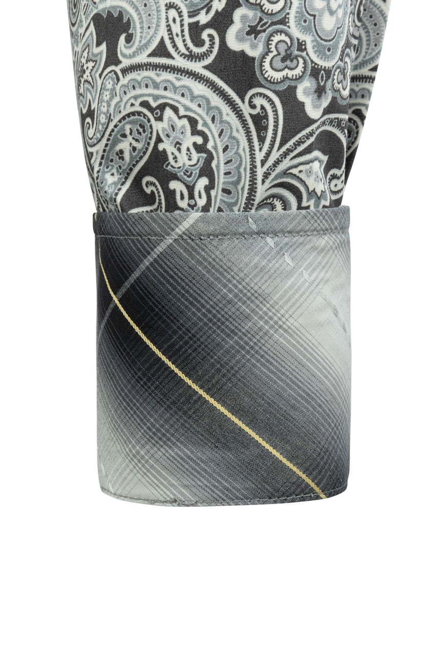 - Silver paisley print on cotton poplin