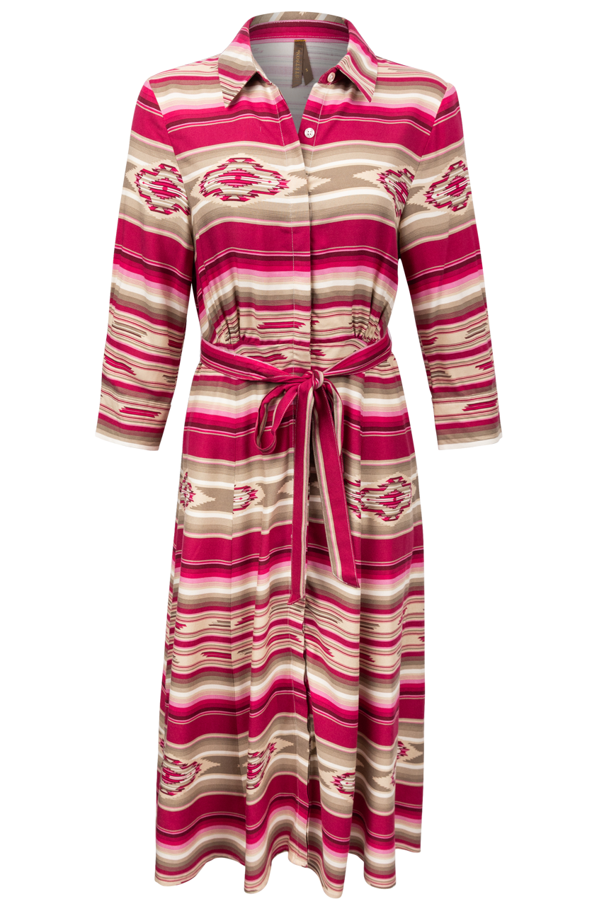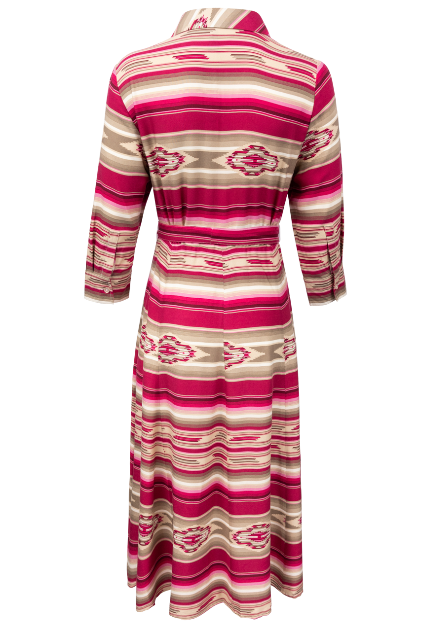 - Long sleeve western midi dress with a serape print