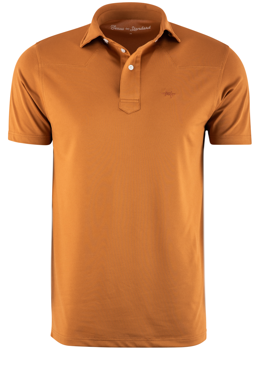 This polo is not what you're used to-refined western-style yokes to the front and back shoulders, made with quick-drying and moisture-wicking fabric, this polo is soft, breathable, and wrinkle-resistant. It also features a signature hidden button-down in the collar.