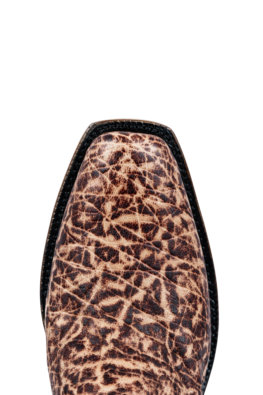 This stunning pair of boots is meticulously handcrafted with leather insoles and outsoles. The heels are stacked leather and are 1 1/2" tall. The toe type is a square toe and the shaft height is a full 13". These boots make a bold statement with the amazing patterns and colors of the elephant and cowhide sections. You can keep these looking great by using a leather conditioner when needed and regularly cleaning them with a damp cloth. Just a little maintenance can keep them in stunning condition so that the beauty of the design and materials always shines through!