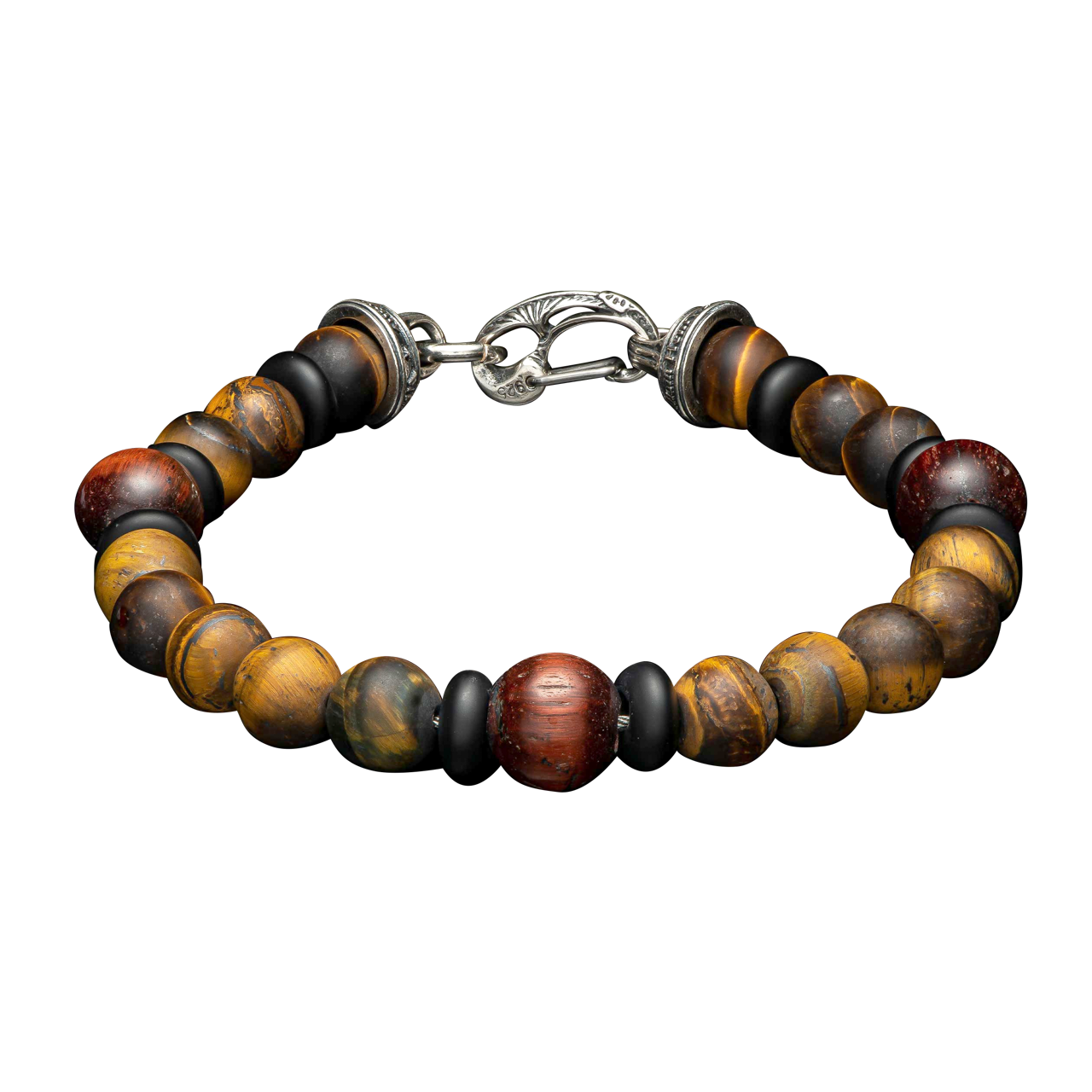 - Material: Red tiger's eye, black onyx, brown tiger's eye, sterling silver